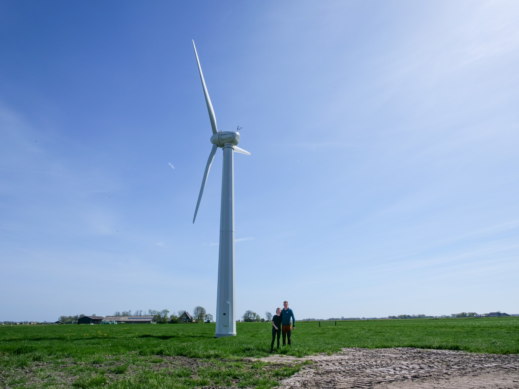 ‘’Zo’n acht jaar geleden speelden m’n ouders al met het idee van een windmolen,” vertelt Auke. “Maar pas toen we serieus naar automatisering in de vorm van melkrobots gingen kijken, kwam het opnieuw op tafel. Op de beurs in Hardenberg spraken we met BestWatt – en dat voelde meteen goed.”